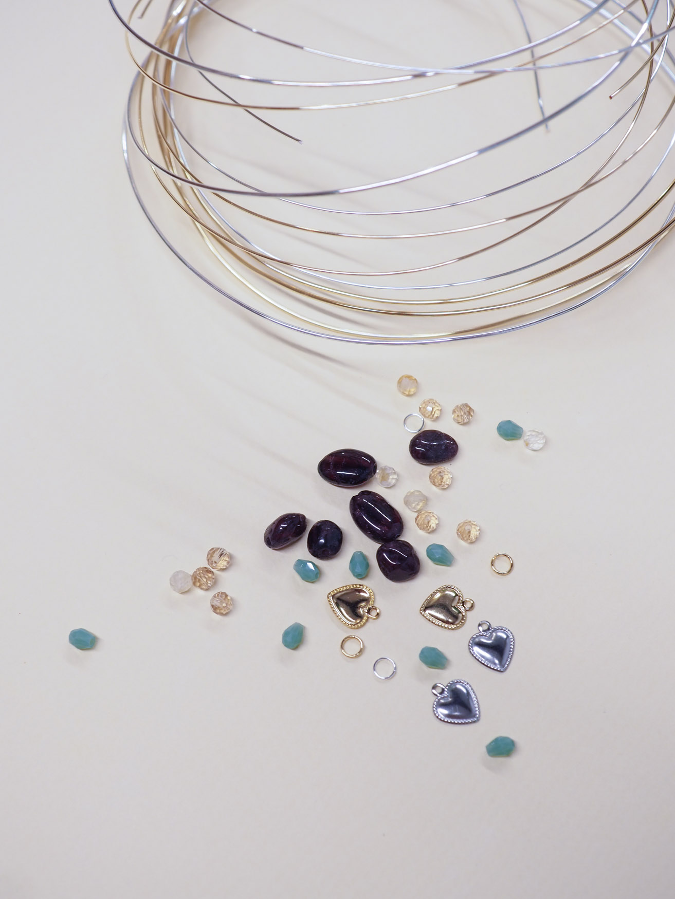 Côté perles, vous trouverez des tons kaki, taupe et bleu, parfaits pour jouer les contrastes doux et stylés. Sans oublier les petits cœurs dorés et argentés, pour un clin d’œil tendre et minimaliste.